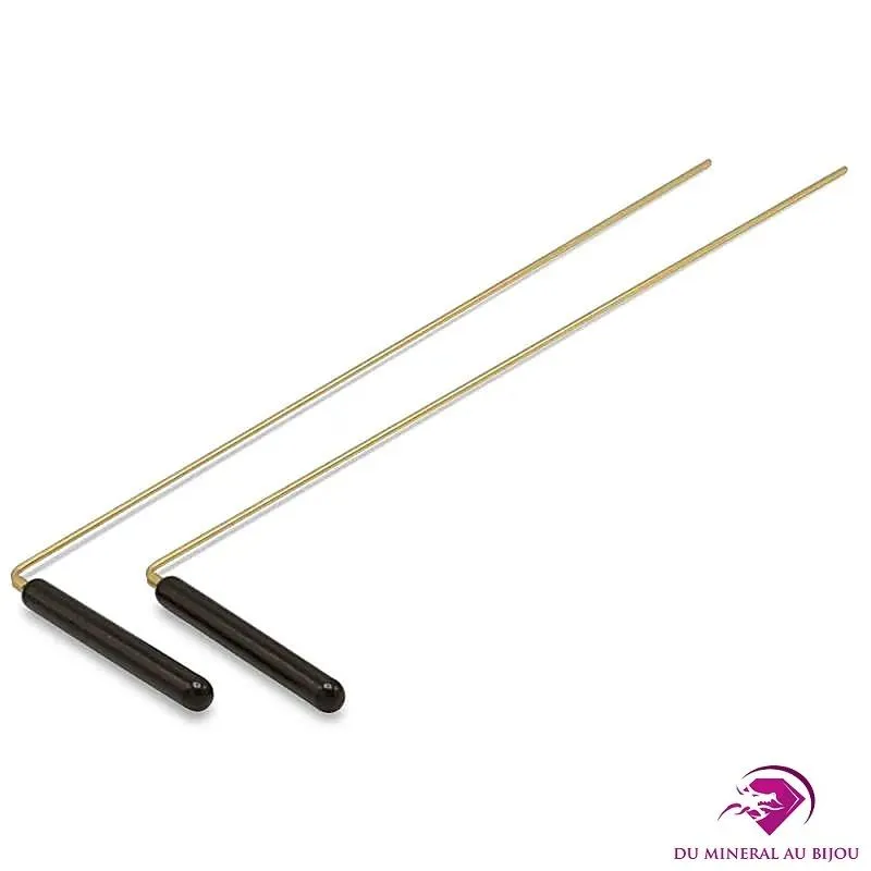 Une baguette de radiesthésie ayant un rapport de taille de 3 à 1 (extrémité longue / poignées) aura un bon équilibre. Les baguettes de radiesthésie sont généralement en cuivre ou en laiton et recouvertes de plastique ou de cuivre. Permettant à la tige de tourner facilement.
